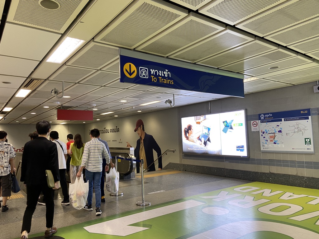 At the subway station, I looked up at a sign above the escalator.
