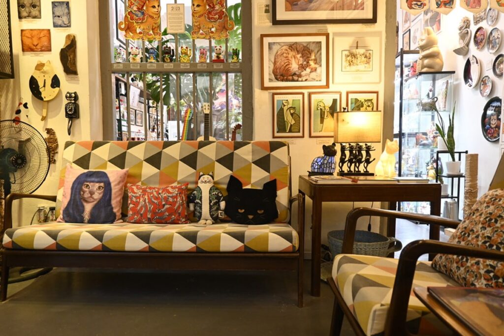 中には猫のアートがいっぱい。