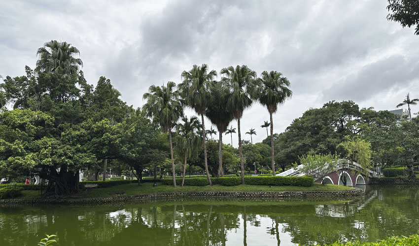 少し待って雨が弱くなったタイミングで、台中公園へ散歩に出ます。