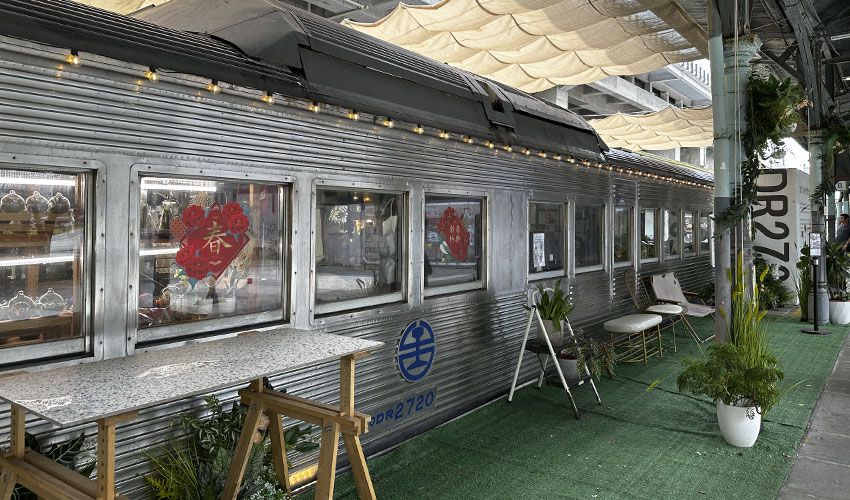 台中駅には、電車の中にカフェやお店が入っていて、いい感じです。